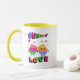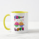 Cupcakes bonitos e coloridos com corações e texto DOCE AMOR