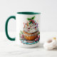 Mágica e colorida caneca de café com Cupcake de hortelã-pimenta.