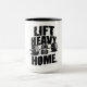 Um design minimalista que apresenta uma forte flexão da campainha sob um peso extremo, simbolizando a força bruta e o esforço. Abaixo da campainha, a tipografia ousada mostra a frase motivacional: "Levante o Pesado ou Vá para Casa", enfatizando determinação e poder.