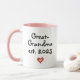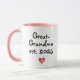 Cute mug for a (new) great-grandma, with message "Great-Grandma est. (year) - Fueled by coffee and great-grandkids" and a playful little heart design. The text is fully customizable - change or delete. Celebrate the joy of becoming a great-grandma (or grandma) with this heartwarming mug. It makes the perfect gift for a new grandma, grandma-to-be or great-grandma. Whether it's for a baby announcement, a pregnancy reveal, her birthday, or just to make her smile, this mug is a daily reminder of her new favorite title - Great-Grandma or Grandma!