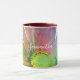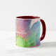Feminine stylish pretty girly unique personalized ceramic combo mug with a name in trendy calligraphy handwritten script. Soft pastel pink background and a big bold colorful floral botanical motif. My original watercolor hand painted wildflower in colorful vivid vibrant nuances of red, burgundy, orange, yellow, lime green, pastel blue. Beautiful premium look drink ware for you or as a thoughtful custom gift under 20 dollars for her. Any plant nature garden enthusiast would be happy to have it on her kitchen and dining essentials collection or to use it at her work place office, or home office. Very versatile, suitable as birthday, Mother’s Day, Christmas, graduation even retirement present. Or just because, as a aesthetic friendship gift for a artsy friend.