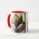 Start your day under the soft glow of the Customizable "Grapes and Wheat" Stained Glass Mug. This high-quality ceramic mug features an exquisite circular illustration of deep amethyst-purple grapes and vibrant emerald-green wheat stalks, all set within a classic diamond-shaped cathedral glass frame.