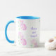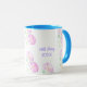 Uma grande maneira de comemorar seu dia especial com uma caneca de café branco bonito com os rosas cor-de-rosa românticos para combinar seus artigos de papelaria do casamento, de uma pintura do watercolour pelo texto de Judy Adamson.The é inteiramente customizável.