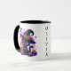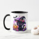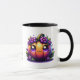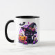Uma adorável abóbora laranja kawaii chibi com flores roxas na sua caneca de café personalizada Happy Halloween.