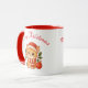 Spread some Christmas cheer with this heartwarming mug! It features an adorable orange tabby kitten wearing a Santa hat and a cozy red and white striped scarf. The kitten is nestled amongst holly berries and a festive ornament with "Merry Christmas" written above. With its red rim and handle, this mug is the perfect way to enjoy your hot cocoa, coffee, or tea all season long. It makes a wonderful Christmas gift for any cat lover, kitten enthusiast, or anyone who appreciates cute holiday decor!