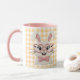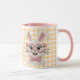 Brighten your day with this adorable mug featuring a charming knitted style bunny. Cute pink heart shaped glasses and a matching bow tie, this sweet rabbit sits against a cheerful yellow and white gingham background. Perfect for Easter, spring, or any bunny lover, this mug makes a delightful gift for kids, friends, or yourself.