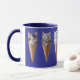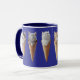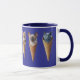 A cute funny cat coffee mug featuring six breeds of kittens sticking out of ice cream cones.