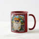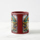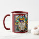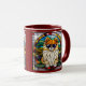 A cute funny dog coffee mug featuring a Pomeranian dog wearing sunglasses portrayed in stained glass.