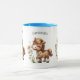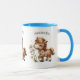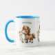 Uma caneca com uma ilustração adorável. Um pequeno pônei marrom comendo margaridas felizes.
