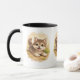 Start your morning with a smile with this adorable cute puppy coffee mug. The charming illustration features a sweet little baby dog lying happily in a soft woodland setting surrounded by gentle nature details.