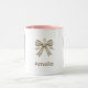 Cute Reindeer & Bow Drawing Christmas Name Coffee Mug. Cozy, boho-inspired Christmas mug featuring cute drawing of a cute deer and festive bow. Soft earthy tones such as terracotta, cream, and green. The overall aesthetic exudes a warm, rustic, and modern Bohemian feel, perfect for a stylish yet festive holiday look.