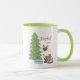 This festive mug features a cute Siamese cat illustration sitting proudly under a Christmas tree adorned with ornaments and tuna can presents. Above the cat, it reads “Joyful”, and below there’s space to add your cat's name for a custom holiday touch. And in the middle it has a message from your feline companion that says I Love You Mom.
