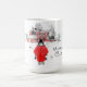 A pintura querida por Carl Larsson que igualmente era o cobrir para seu livro da bainha de Ett, uma casa da aguarela das belas artes do vintage em inglês, de sua filha na neve em um casaco vermelho na frente da casa da fazenda está nesta caneca. A imagem é dominio público devido aos direitos reservados expirados.