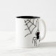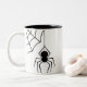 Caneca assustador do Dia das Bruxas com uma aranha da viúva negra que pendura de sua Web. Disponível em alguma caneca ou caneca de viagem do estilo.