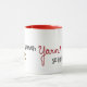 Uma caneca perfeita para knitters com o fio da frase "tanto, tão pouca hora", com fio e agulhas de confecção de malhas.