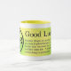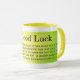 Boa sorte que diz em uma caneca de café