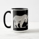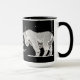 Aprecie sua fermentação favorita ou a bebida em uma caneca à moda da cabra de montanha com "é você que tenta obter minha cabra?" texto entre duas imagens de oposição da cabra de montanha com um fundo do teste padrão da neve, um desenho original digital aumentado e um design da cabra criados pelo artista Ralph Jones de Ikonikon.