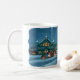 uma caneca festiva do bebendo para a família inteira que caracteriza um squaire nevado da cidade na Noite de Natal. lembrança bonita do feriado de inverno com um design exclusivo pelo glerum sincero art.