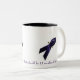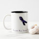 Caneca de café que aumenta a consciência para o abuso doméstico, não apenas em outubro mas cada mês. Design saboroso, caneca branca com uma fita roxa. A escrita na caneca diz, "a consciência do abuso doméstico deve ser 12 meses do ano.
