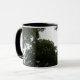 Esta linda caneca apresenta uma fotografia tirada de dentro de uma floresta densa. A fotografia mostra a escuridão das árvores e uma pequena área do céu das cinzas. O resultado é uma cena estranha e atmosférica. A design é mostrada em uma caneca de café em estilo preto e branco, mas também está disponível em vários outros estilos e cores de canecas.