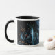 Uma galáxia espiral metamorfoseia na hélice dobro do ADN. As estruturas químicas e os cromossomas são visíveis, simbólico da vida no espaço. De uma ilustração dos meios mistos criada para o compartimento da astronomia. A arte original está em um colecção privada.