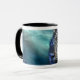 A lua do leopardo é do "espírito" da série selvagem de arte pela canção de natal Cavalaris. Nos olhos de um leopardo há um mundo da obscuridade e da luz, de luas passadas e de noites, um espírito tão rápido e sem medo. Aprecie esta caneca exótica do gato grande com o leopardo exótico e a pintura mystical da lua. Este design está igualmente disponível em um poster da arte, na caneca, e nos outros artigos.