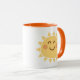 Deixe o sol aumentar em cima de sua parte externa da manhã não somente mas para dentro. A luz do sol brilhante e feliz em sua caneca fará toda a manhã que muito mais ensolarado. Eu fiz a cor do interior e do punho na laranja mas você pode sempre mudar a cor para combinar seu estilo.