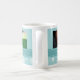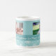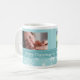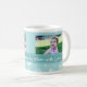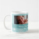 A caneca feita sob encomenda da foto da mamã do Feliz Natal nas máscaras à moda da cerceta azuis, brancas, e da turquesa em um teste padrão delicado do floco de neve com texto customizável e foto, aperfeiçoa como um presente de época natalícia.