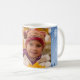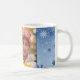 A caneca feita sob encomenda da foto da mamã do Feliz Natal no teste padrão azul e branco à moda do floco de neve com texto customizável e foto, aperfeiçoa como um presente de época natalícia.