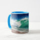 Eu amo o oceano - e esta pintura reflete aquela e meu tempo que vivem na praia em Nova Zelândia. O punho azul funciona perfeitamente com a imagem na caneca. O excelente para cada uso do dia, ou fariam um presente bonito para alguém que ama as ondas - talvez um surfista!