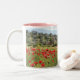 Esta caneca é uma caneca do dois-tom com na parte externa que você verá uma fotografia maravilhosa de um campo da papoila, e o interior que tem um tom do NIC do rosa que felicita a imagem.