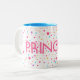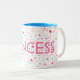 Agrida o design para uma menina pequena da princesa com estrelas coloridas, corações e texto cor-de-rosa. Você pode adicionar o texto ou imagens feitas sob encomenda e escolher seus próprios estilo, tamanho e cor da caneca.