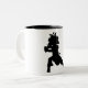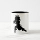 Caneca de café antiga da silhueta do guerreiro do samurai.