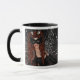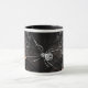 a decoração pintou digital com detalhes bonitos - mostras uma laterais a viúva negra com a máscara, conectada por uma aranha brilhante ao outro lado da caneca, onde você pode ver a viúva negra sem a máscara.