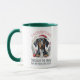 Dachshund Through The Snow Doxie Christmas Coffee Mug apresenta uma ilustração moderna de cães dachshund vestindo um chapéu de Papai Noel em uma coroa floral com o texto "Dachshund through the snow on a one cavalo open sleigh" na tipografia moderna da escrita. Perfeito para aniversários, Natal e feriados como presentes para familiares e amigos, amantes de cães, mães de cães, pais de cães, babás e muito mais. Personalize editando o texto na caixa de texto fornecida. Criado pelo Evco Studio www.zazzle.com/store/evcostudio