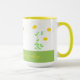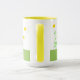 Caneca de café amarela, realçada com verduras, com uma impressão de margarida branca fresca. O texto pode ser personalizado para sua própria mensagem inspiradora, ou o texto pode ser removível. Lindo ideia personalizada de presente.