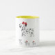 Os cachorrinhos Dalmáticos numa caneca de dois tons com um cabo colorido.