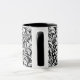 Caneca de café em uma cor damasco de William Morris do vintage de flores e de folhas do cardo, no branco, em um fundo preto, digital aumentado e colorido