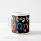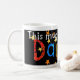 Caneca clássica, lavadora de louça e micro-ondas segura, com a inscrição "Esta caneca pertence ao Daniel" em colagem de papel colorida e pintada à mão.