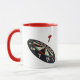 Em destaque está uma vista lateral de um Dartboard com um dardo vermelho em voo no caminho para Bullseye.