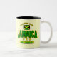 ÍNDIAS OCIDENTAIS de JAMAICA em amarelo, em verde e em preto, com uma bandeira jamaicana. Beba seu café jamaicano fora desta caneca para um gosto do caribe!