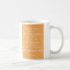 Esta caneca caracteriza um design pelo artista Anne Harwell. O fundo alaranjado com texto branco que lê "aqueles que trazem a luz do sol às vidas de outro não pode mantê-la dse".