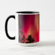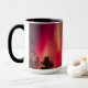 Luzes do Norte vermelhas sobre árvores nevadas no Alasca.