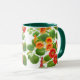 A pintura de videiras coloridas da flor da chagas em uma caneca de café da campainha projetou por Carolyn McFann do estúdio de ronrom de dois gatos.