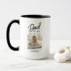 Surpreenda o Papai com uma caneca personalizada que ele irá guardar com carinho todas as manhãs. Esta xícara de café de cerâmica branca apresenta uma alça preta elegante e interior, com espaço para fazer upload de uma foto de seu filho enquadrada sob a palavra Papai em escrita elegante e um detalhe Est. ANO correspondente. O design se repete em ambos os lados para facilitar a visualização, e todas as cores são personalizáveis para combinar com o seu estilo. Seja para o Dia dos Pais, seu aniversário ou um presente atencioso para o dia a dia, este objeto é um lembrete caloroso das pessoas que ele mais ama.