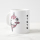 Um design de baleias duplas assassinas adorna esta caneca gigante. O presente perfeito com ele é a personalização fácil. Trabalho de arte do artista nativo do Alasca S. Coxwell.