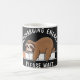 Uma caneca de café expressando cansaço com a imagem de uma preguiça pedindo para recarregar energia.