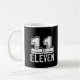 Texto branco corajoso com o numeral 11 na parte superior e a palavra soletrada para fora em inglês abaixo dele, em pias batismais modernas sujas (ou em sua escolha) em um fundo colorido preto.