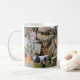 Uma caneca de café de colagem fotográfica personalizada com 16 fotos em uma colagem de fotos sobrepostas sem bordas. Beba seu café matinal com esta caneca personalizada de colagem fotográfica impressa com dezesseis fotos em uma colagem divertida de fotos sobrepostas.