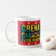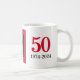 Na moda, patriótico 2024, GRENADIAN 50º aniversário Independência Café Mug para celebrar o 50º ANIVERSÁRIO DE INDEPENDÊNCIA DE GRENADA em 2024. A design mostra GRENADA, CARRIACOU e PETITE MARTINIQUE com 50 em tipografia vermelha a negrito e os anos 1974 - 2024 em texto negro. Todo o texto na parte inferior é PERSONALIZÁVEL, para que você possa adicionar seu nome ou criar seu próprio texto, por exemplo, seu nome (família) ou grupo ou evento. Essa independência grenadiana Coffee Mug seria um favor ideal dado em comemorações, jantas e festas para gregos patrióticos, Kayaks e Petite Martiniquans - quer para comemorar esse aniversário ou idade ou aniversário de casamento. Esta Mug de Café Granada também seria excelente como mercadoria para o seu evento especial de independência do Grenada.